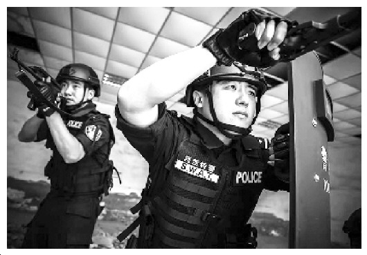 图②:天津市公安局河西分局“尖刀机动队”动备岗组特警反复演练每一个战术动作。李新容 范瑞恒 摄